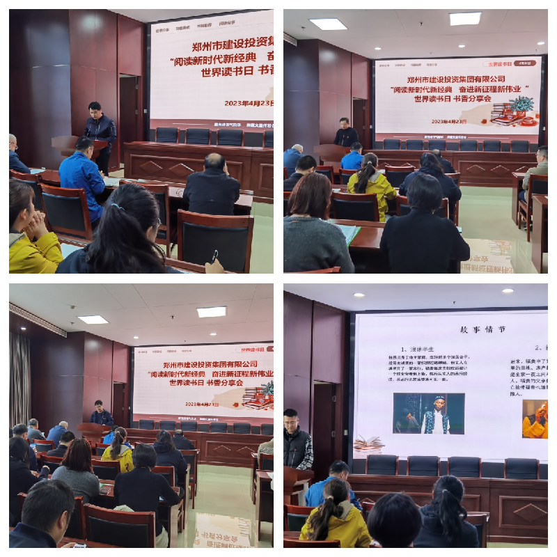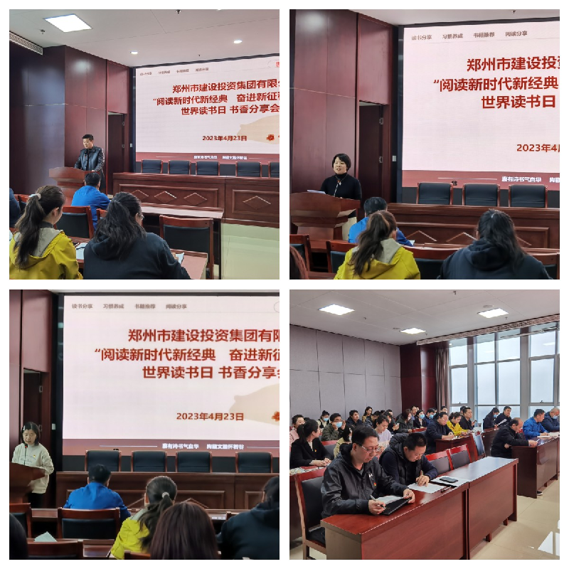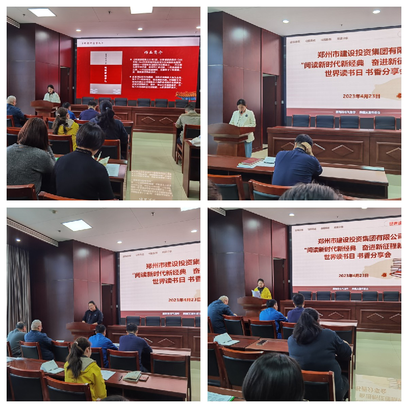為推進(jìn)全民閱讀、建設(shè)書香社會(huì),以書香企業(yè)建設(shè)進(jìn)一步堅(jiān)定文化自信、提升文化自覺。4月23日上午,在第28個(gè)“世界讀書日”到來(lái)之際,鄭州市建設(shè)投資集團(tuán)有限公司組織開展“閱讀新時(shí)代新經(jīng)典 奮進(jìn)新征程新偉業(yè)”讀書心得分享活動(dòng),公司各部室、各項(xiàng)目部、各控股公司60余人參加此次活動(dòng)。